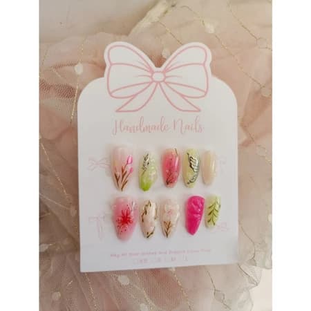 Kuku Palsu Sedang Nail Art 3D Timbul Ukiran Bunga Gradien Es Terbaru